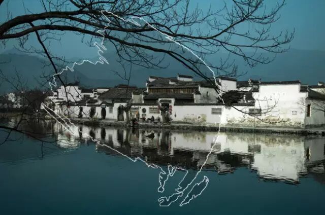 最后删除底层照片得到被“墨迹”之后的效果。如果图片的选取顺序相反,可以得到下图的效果: