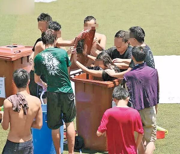 图为科大曾经举办的迎新营活动,女生被放进水中,全身湿透。