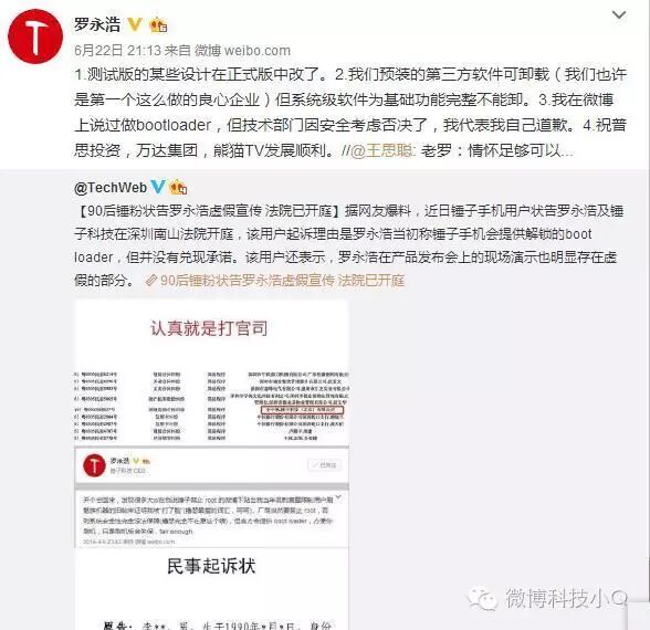 老罗微博:他的诉求在道理上都是不成立的,我们胜诉了我就当它没发生过;如果我们败诉了,我会请他上视频网站对谈,我不是西门子的CEO,不会端着,不会回避问题,。