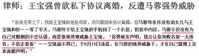 王宝强诚心想和马蓉好聚好散,可是马蓉的回复一点都不念及昔日情分,反而威胁起王宝强来了!