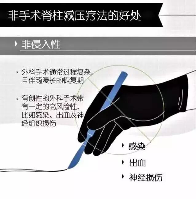 效果不理想的第二个原因,就是牵引治疗腰间盘突出还存在一定的风险。如果椎间盘已造成突出或脱出,进行牵引完全无效,并且有可能加重病人症状。在急性期腰间盘突出者绝对不能进行牵引,因为病人在急性期时,由于神经根的水肿和炎症刺激,会引起腰背肌肉紧张、痉挛,如果这时牵引就会拉伤腰肌纤维,造成腰痛而加重临床症状。由腰间盘突出引发椎管狭窄的患者,如做牵引治疗,极易引起下肢瘫痪。