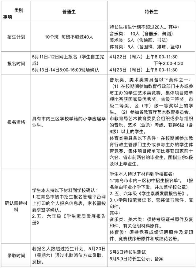 根据《青岛市教育局关于做好2017年全市义务教育学校招生入学工作的通知》精神,实行面向市内三区招生、网上报名、现场确认报名、电脑派位的政策。报名人数超过招生计划的,通过电脑派位方式录取。