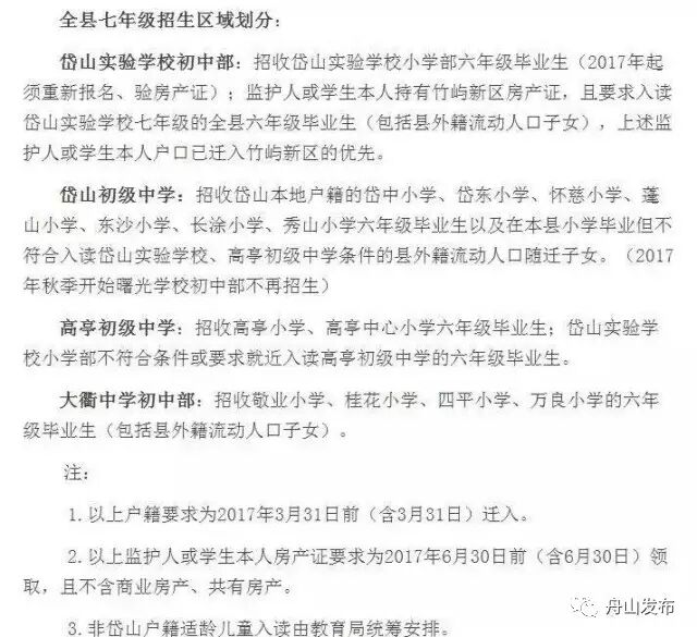 ● 入学对象户籍2017年6月30日之前在定海城区的。
