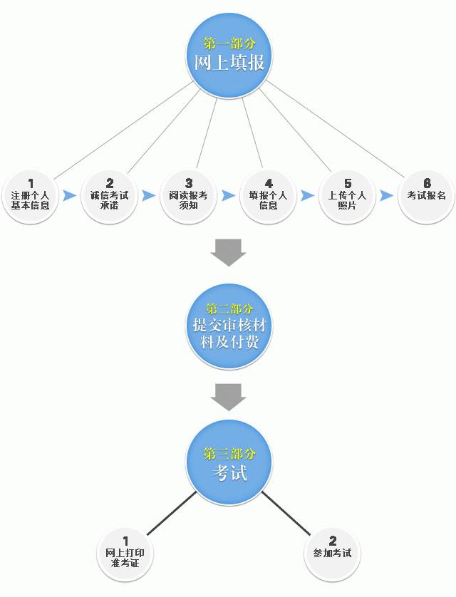 第七步:考试报名。根据页面提示操作。考生在报名时须选择户籍或用人单位或学籍所在地的考区为应试考区,并根据本人情况选择考试类别和考试科目,具体考试地点以考生下载的准考证上地址为准。