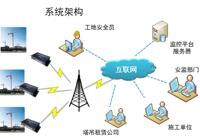 7、远程监控平台通过互联网与所属的所有现场监控平台进行连接,并将现场的记录和统计结果不断同步到远程数据库,从而可以将任何所属塔机的任何可能的危险情况记录并提示给区域管理员,消除了现场与管理部门之间的沟通障碍,、漏报现象,并能变被动为主动,针对具体情况实时作出分析判断,提高了工作效率。