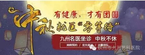 钦州九州男科医院专家介绍说,“中秋”假期就是就医的好时机。如,包皮切除、轻微泌尿感染这类的疾病,1-3天基本可以进行康复治疗,有效不会影响节后的工作。即便是慢性前列腺疾病,也可以在此期间确诊,并进行领先阶段的正规治疗。