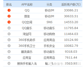 从移动互联网的用户活跃度排名可以看出,主要还是集中在社交、音乐、安全和应用商店。在资讯阅读上咱们中国人还是很欠缺啊,我还以为今日头条或网易新闻能榜上有名呢![]()