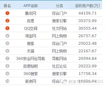 可以看出腾讯网的活跃用户超过了百度,这也不难理解,现在QQ和微信有十分庞大的装机量。加上每天腾讯的弹窗已成为很多人收看新闻的固定方法,腾讯网的流量想不上去都难。