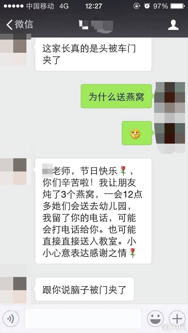 这家长也的确奇葩,炖好的,你让她一顿吃掉吗?估计这个老师也想表达这意思,而非送的东西看不上。