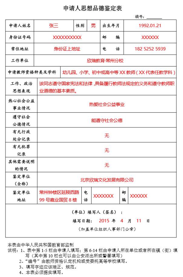 在教师资格认定中,除了体检证明和普通话证之外,思想品德鉴定表也是一项重要材料。今天欣瑞教育常州分校(www.xmexam.com)小编就再来就思想品德鉴定表中的热点问题和大家分享。