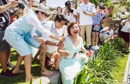 相信参加过婚礼的人都知道,兄弟团在接新娘出门的时候,总会对姐妹们喷射雪花。但他们喷雪花的方式,总会让姐妹们很狼狈!