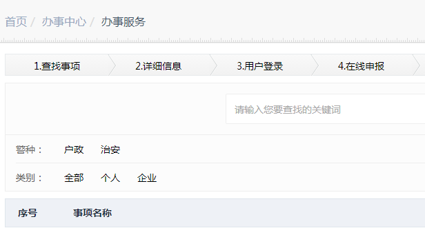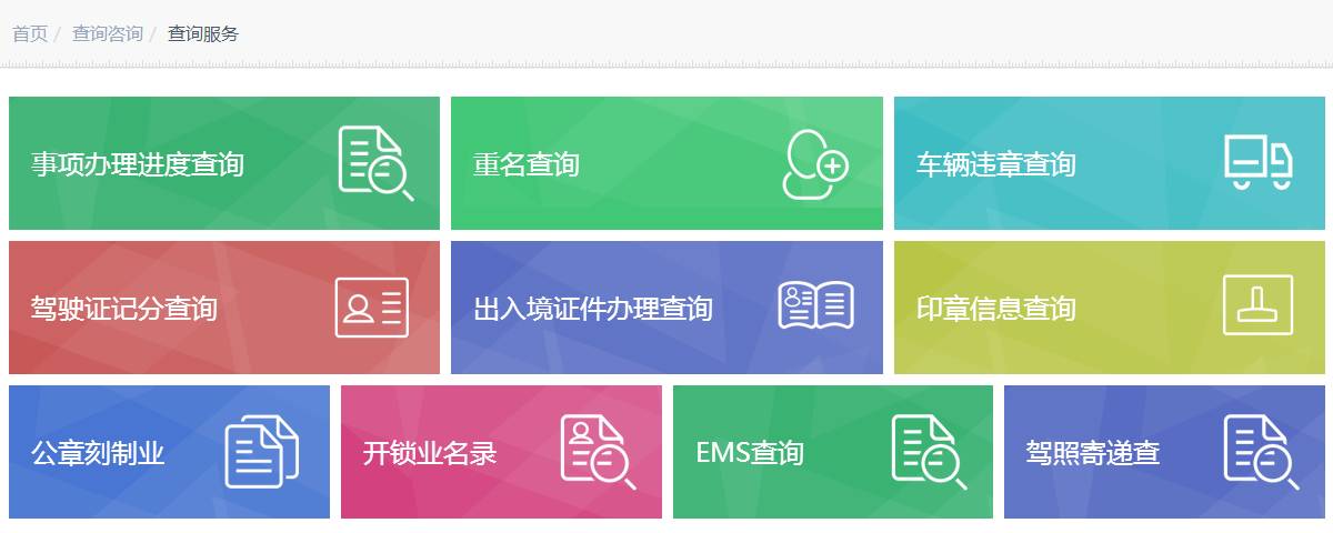 有重名查询、交通违章、户籍业务、线索举报、报警求助等等……