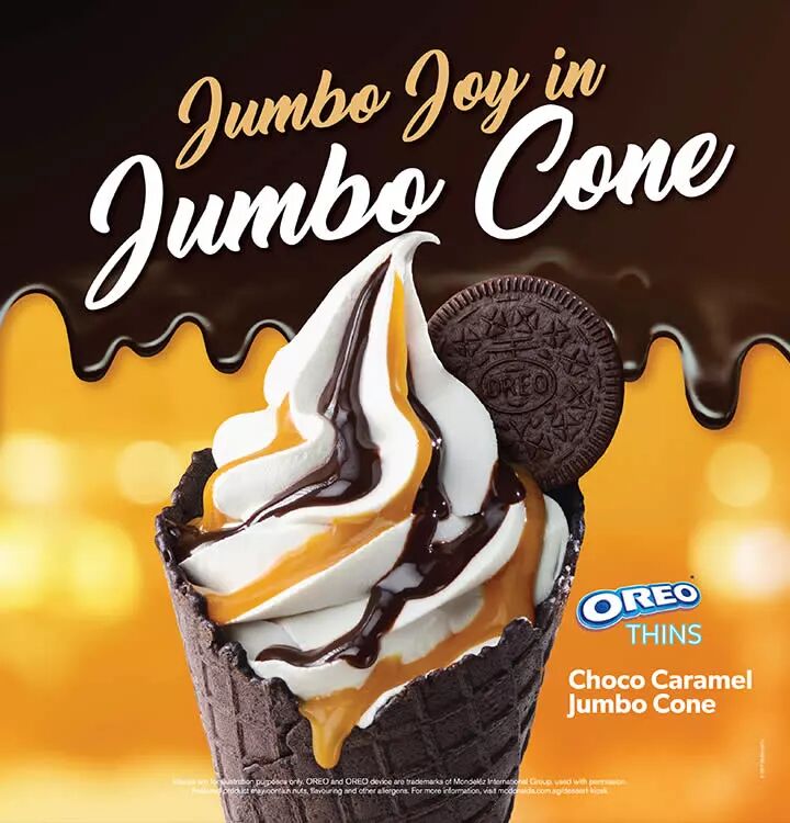 麦当劳的巧克力焦糖大甜筒搭配在一起——用经典的软软软软的软糖做的,还有焦糖和巧克力酱,上面盖上一层奥利奥。