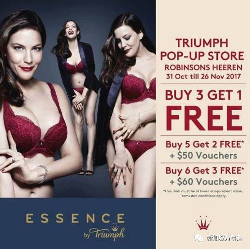 时尚高端的内衣品牌Triumph开始年终大促销,买3送1,买5送2,买6送3!各位Lady赶紧下手吧~