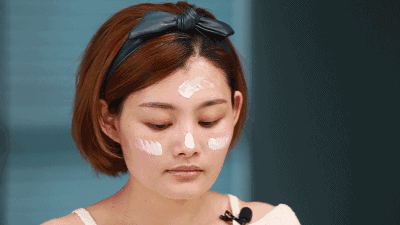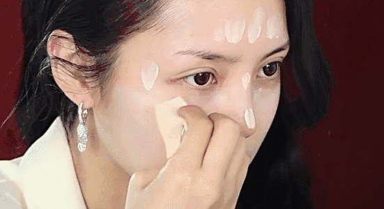 按压服帖,这一步对干性皮肤很重要,因为干皮容易卡粉,用一个三角形化妆海绵在纯净水里浸湿,再用手把水分挤干。然后用它在脸上轻拍按压,将粉底液彻底拍贴。
