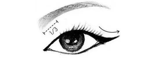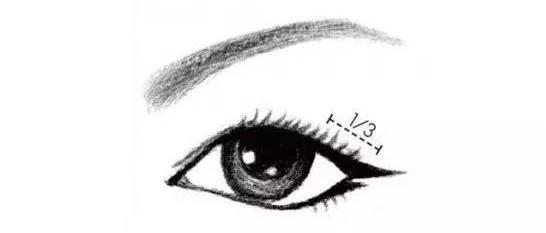 眼线建议从眼睛的1/3部位(不是眼头哦~)开始向眼尾画一条比较平直的眼线,眼尾的眼线:短、粗、平。