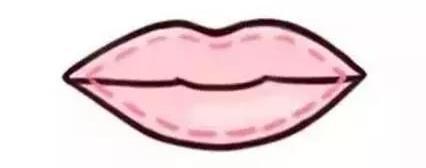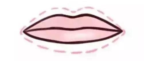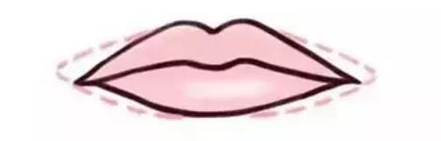 如果想要一个稍微性感一点的厚嘴唇,可以先用唇线笔描出唇线(如图),然后再用口红把虚线里的位置涂满。