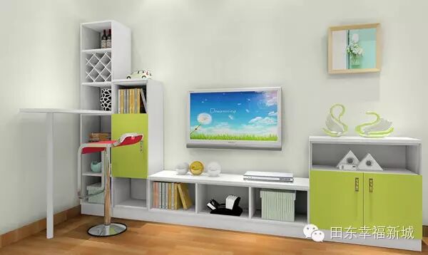 5.一般人们在看电视时,其视线的高度应该在其坐下时的视平线下,因此,在选择电视柜时,摆放电视的高度设计应以30—40厘米为最佳。