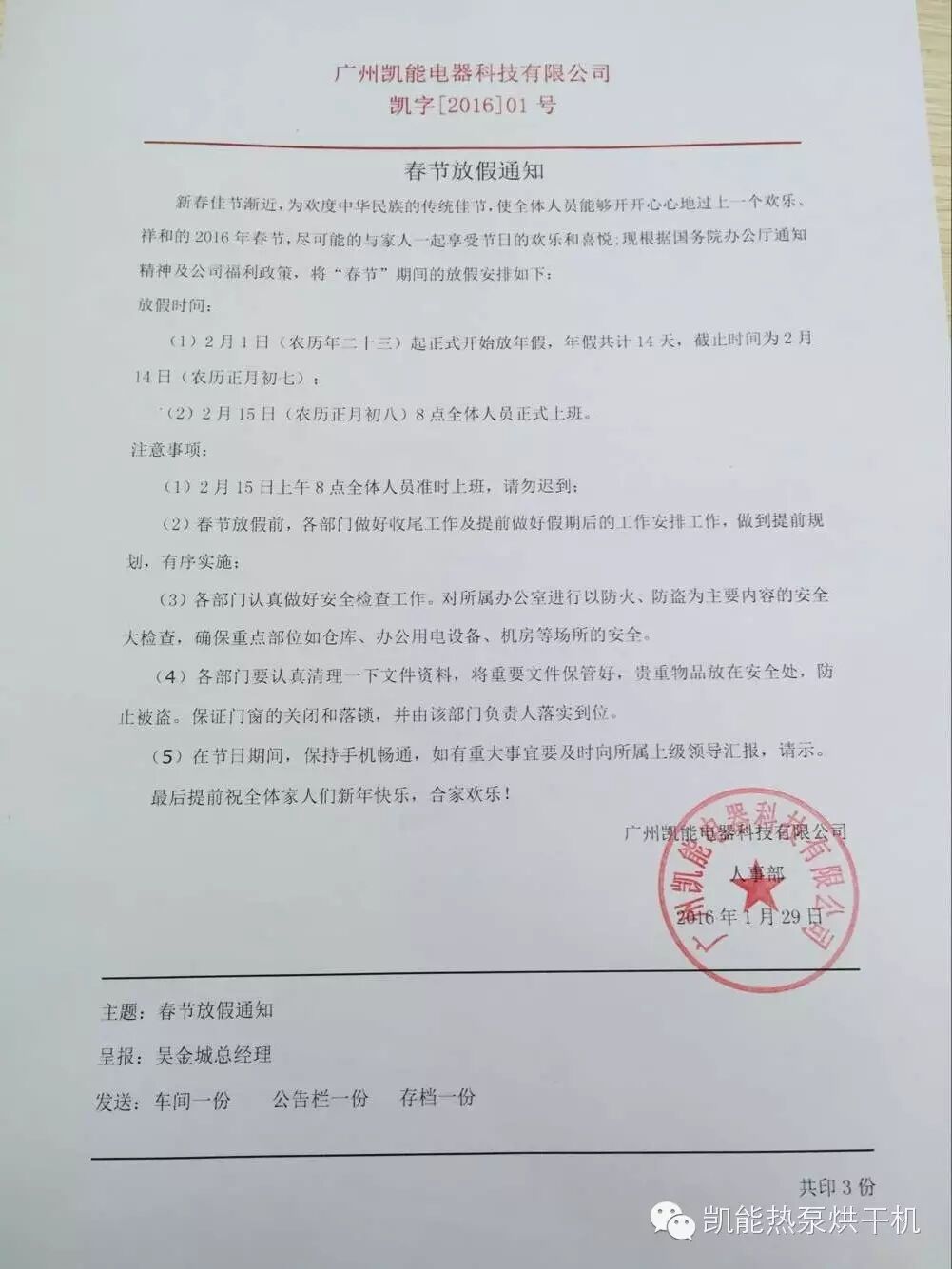 新春佳节渐近,为欢度中华民族的传统佳节,使全体人员能够开开心心地过上一个欢乐、祥和的2016年春节,尽可能的与家人一起享受节日的欢乐和喜悦;现根据国务院办公厅通知精神及公司福利政策,将“春节”期间的放假安排如下: