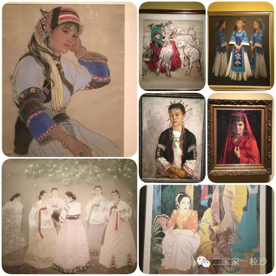 中国美术馆是二进宫,第一次去时只去了人偶展览和书法展览,最大规模的民族大团结展出几乎没有看,但就在那最后一撇时,我发现皮皮最喜欢看的是画展...原因很简单,娃稍微看得明白。后来几天我念念不忘,于是再次来参观,只看一层的民族大团结画展。来后才发现我低估了展出的数量,近十个展厅,各种类型的画作,版画,油画,水彩,中国画,漆画,壁画......基本囊括1949年以来涉及民族类画作的精品。乍一听这画展的名字"民族大团结",一股天然的反感涌出,不过画的内容各式各样,各民族人物形象刻画,日常生活白描,还有自然风景和静物等,都是值得看的精品,对于成人来说都值得驻足观摩的。涉及大团结的盛世凯歌画作倒是有,不多,而且六七十年代的作品居多,从欣赏的角度看看也无妨。意外的是还看到了徐悲鸿和齐白石的真迹。