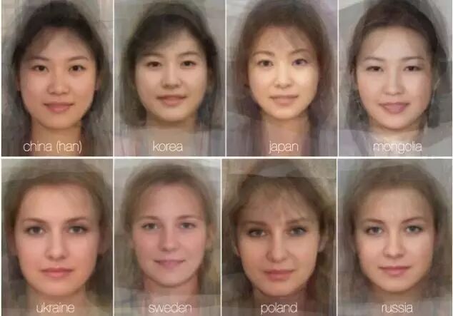 英国格拉斯哥大学心理学家绘制的各国女性的“平均脸”