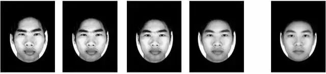 在一个实验中,罗兹团队制作了一张24名中国男性的平均脸,用作标准模型(如下图最右)。左一到左四这四张照片的平均程度为依次递增。在你看来,这四张脸的颜值是不是也依次递增呢?