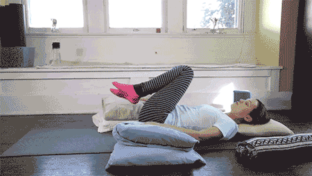 以下几个动作较一般瑜伽更为轻松简单,再加上大量的枕头、毯子,增加辅助,都是在生理期都可以练习的动作: