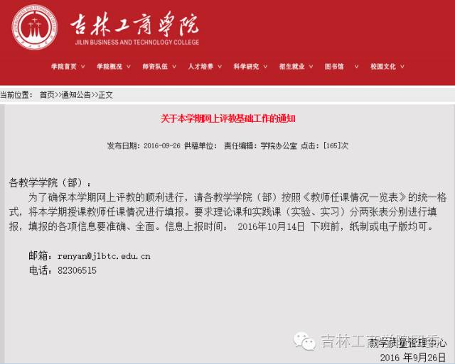 为了确保本学期网上评教的顺利进行,请各教学学院(部)按照《教师任课情况一览表》的统一格式,将本学期授课教师任课情况进行填报。要求理论课和实践课(实验、实习)分两张表分别进行填报,填报的各项信息要准确、全面。信息上报时间: 2016年10月14日 下班前,纸制或电子版均可。