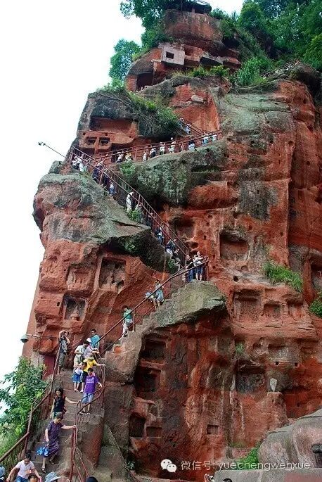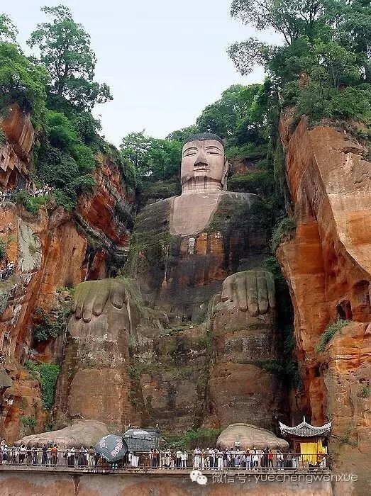 去看大佛,需要一定的历史文化知识,才觉得有味。据说该尊大佛是一尊弥勒佛坐像。毗邻凌云寺,又称凌云大佛,高71米,由唐玄宗元年凌云寺的一位海通和尚修建。在这位高僧去世后,其弟子又筹集善款继续修建,前后整整持续约九十年。大佛建成后,全身巧妙地布满了排水系统,三江汇流处的沉船事故消除了。所以,大佛在人们心中的地位非常重要。