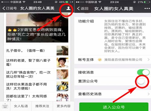 第二步:找到订阅号-打开-选择公众号-进入【置顶】