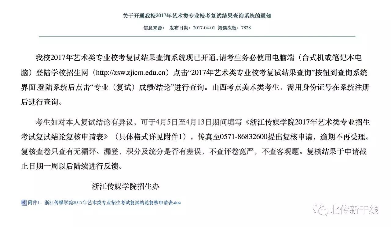 浙江传媒学院和南京艺术学院4月1日开始,都可以查询到2017年艺考成绩了~