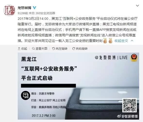 不方便收看视频直播的小伙伴也别着急,在新浪微博搜索“龙警微博”,我们的小编对启动仪式进行了全程的图文直播。电视电脑,微博微信,没有你看不到的地方,这就是新媒体,这就是高科技!