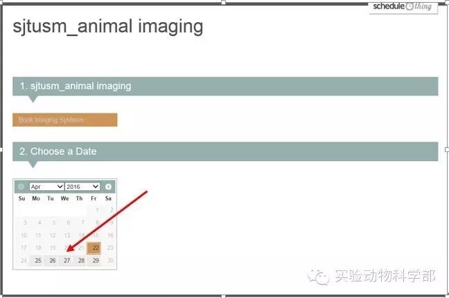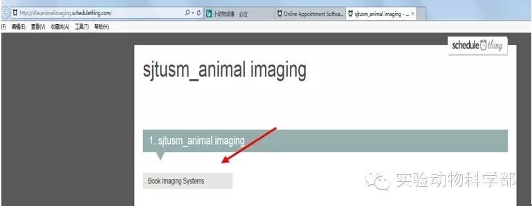 在浏览器输入网址:http://dlasanimalimaging.schedulething.com/,点击“Book Imaging System。