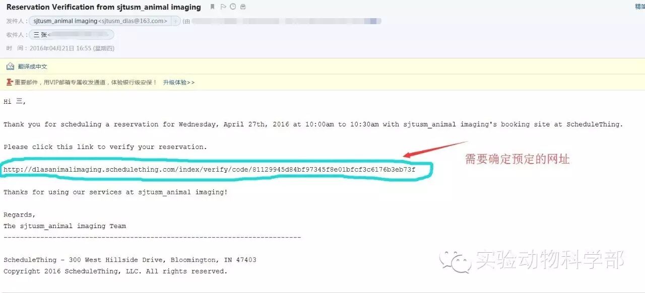 步骤六:请在预定时使用的邮箱中接收预定邮件,并点击相关链接确认