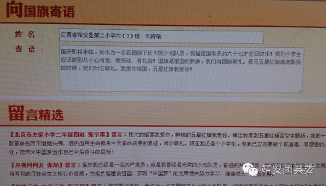 按照上级文件精神部署,为加强未成年人思想道德建设,增强爱国意识,激发爱国情感,靖安二小少先队大队部在国庆来临之际开展“向国旗敬礼”网上签名寄语活动。