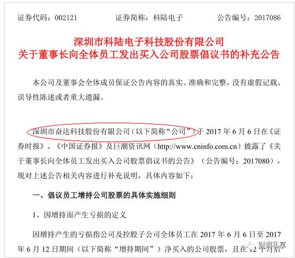 据了解,此公告本是倡议员工买入公司股票的补充公告,早在6月6日,公司就曾公告倡议:公司及控股子公司全体员工积极买入科陆电子股票,凡在2017年6月6日至2017年6月12日期间净买入科陆电子股票,连续持有12个月以上,且持有期间连续在职的,若因买入公司股票产生的亏损,由本人予以补偿,收益则归员工个人所有。
