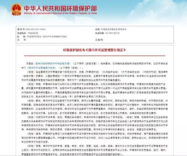 《排污许可证管理暂行规定》是全国排污许可管理的首个规范性文件,是实现2020年排污许可证覆盖所有固定污染源的重要支撑,同时为下一步国家制定出台排污许可条例奠定基础。