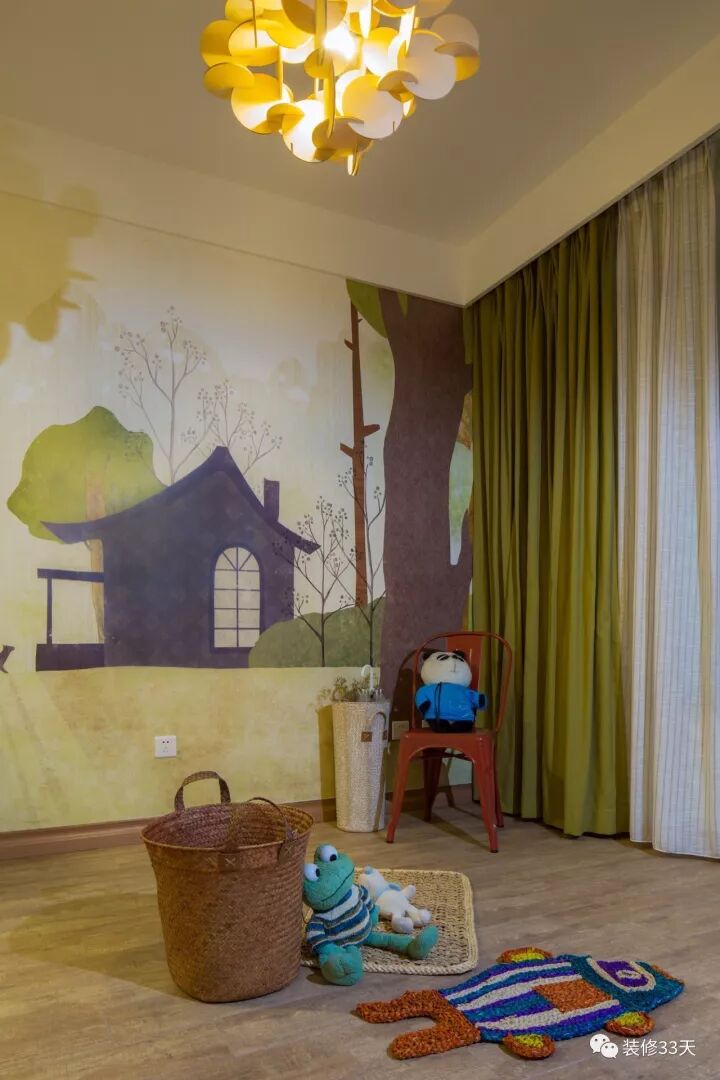 ▲ 儿童房不一定用粉色才好看,养眼的绿色,搭配自然风的壁纸,让孩子在自然色调的空间中,放松的玩耍