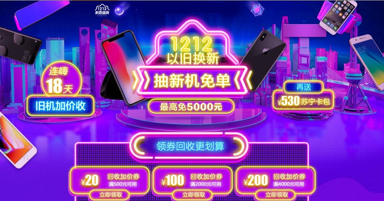 各电商巨头凭借流量及平台优势,先后试水布局,而此次苏宁易购则走出了一条新的路子,首先是选择双12这样的流量集中节点进行大推,其中包括在官网流量聚集位置上线钜惠专题,并且各类优惠券抵用券设置也异常丰富,在方式上主要有旧机折现及新机抵扣等方式。