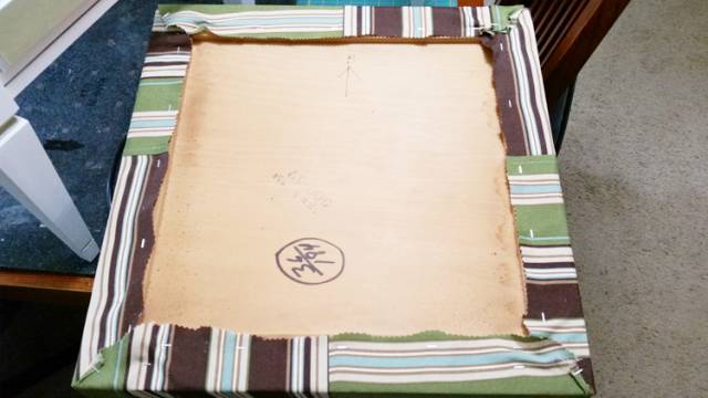 ▲正面包裹合适尺寸海绵垫,并在背部缝纫固定
