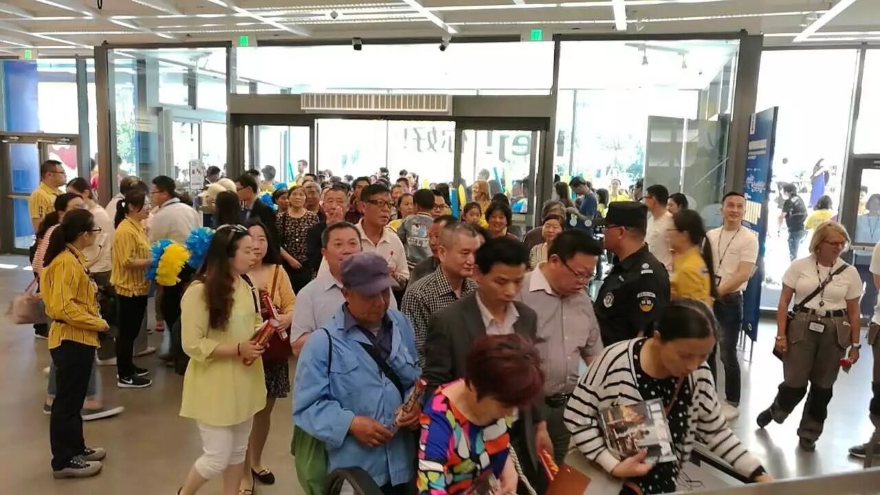 9点半之前,在商场东侧,众多顾客已经排起长龙,等待入场