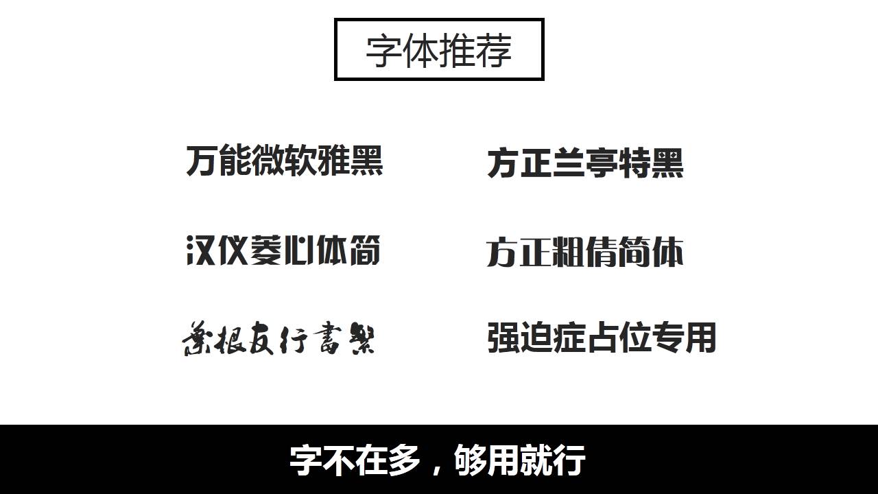 我还会列举字体选用的秘诀,事实上互联网上动则几百上千的字体包真的没有太多用途。