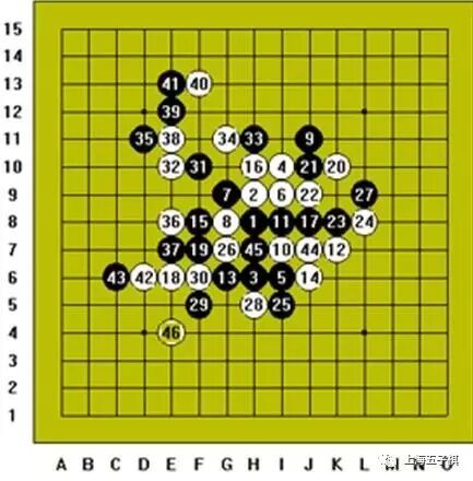 大风起兮云飞扬,鏖战数月的辛劳将毕其功于一役,对此时豪情万丈的小熊猫的心境大家不难体会,这种决战颠峰时刻的兴奋、期待、焦虑交织在一起的独特感受,正是冷兵器时代武林豪客、将军们所迷醉的,同样也是现代竞技体育常常带给大家的过瘾享受。面对这样的挑战,我所熟悉的小熊猫是绝不会轻言放弃的——取胜,惟有取胜一条路!对连珠稍有了解的都知道,瑞星开局白12以下到黑31的过程是每一步都几乎唯一的常见定式,白最强走在F9,以下黑略优难胜,和棋的可能性居大,再加上大家研究较多,可借鉴的棋局很多,这对一心求胜的白方来说不是一个好的选择。32 E10求变,黑33较少见,但不失稳健,35防于要点,以下白棋以积极的姿态强占要点,力图形成有效的攻势,至白46暂时没有形成实质性突破,相反黑在左上形成了一定的厚势,具有相当的发展潜力,此处黑的进攻或许正是白棋的机会。黑47选点非常关键,极有可能成为本局的分水岭,让我们拭目以待。