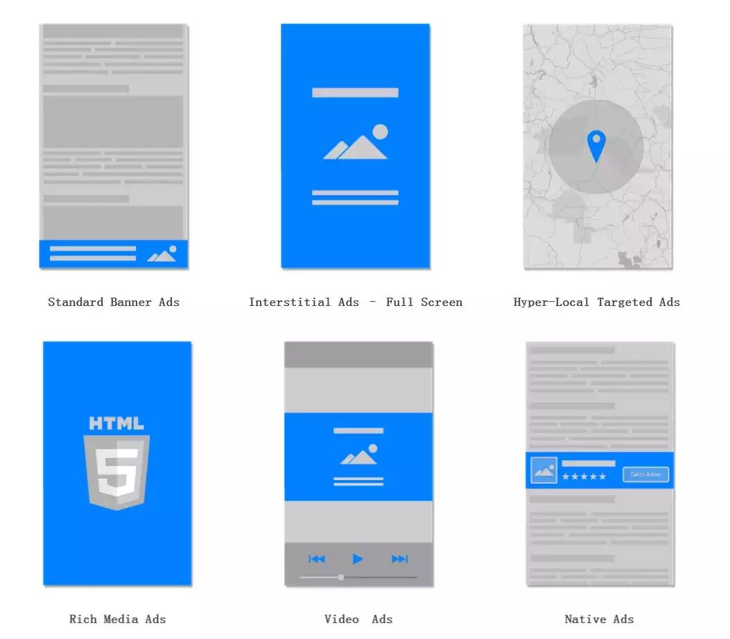 广告本身不一定是有毒的,不然我们看个视频,刷个微博,手机岂不是分分钟狗带?但广告却可能在病毒传播过程中充当媒介。目前在移动端,我们比较常见的广告形式有下面六种,分别为横幅广告、全屏弹出式广告、定位广告、富媒体广告、视频广告以及原生广告。