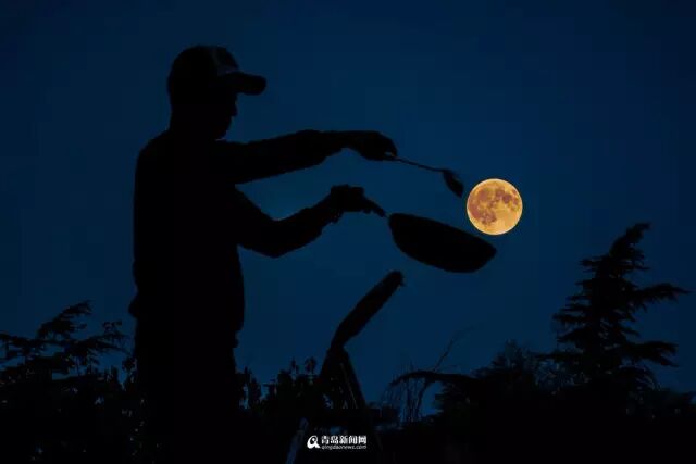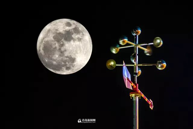 高清:超级月亮光临青岛 看达人玩转花式拍摄