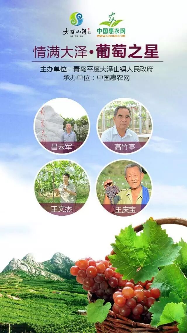 “一方水土养一方人”,,为大泽山葡萄的卓越贡献者宣传,旨在提升大泽山葡萄的关注度和影响力,倡导葡萄“高品质”的品牌理念,推介大泽山优质鲜食葡萄。