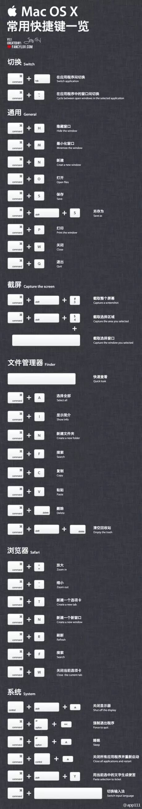附送Mac OS X快捷键一览表,还不赶紧收藏!