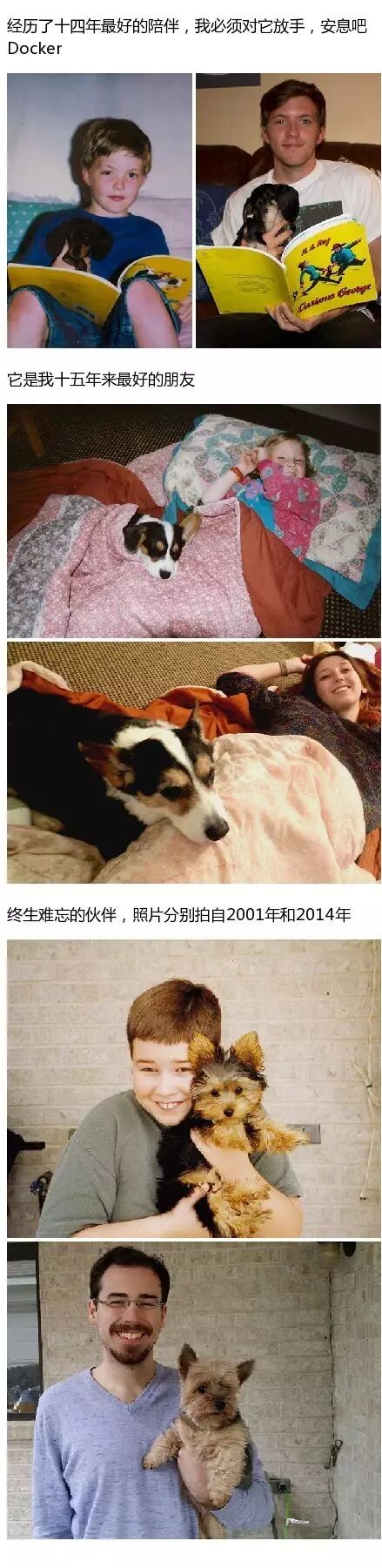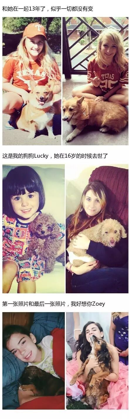 美国网友曾经在网上发起了一个活动:上传自己跟狗狗的第一张合照和最后一张合照。
