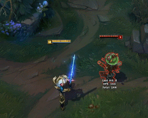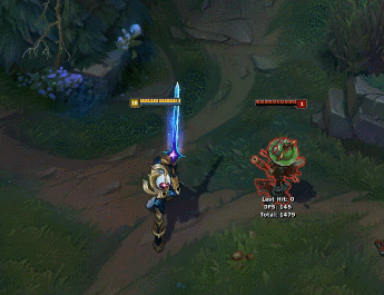 这款皮肤最大的亮点就是该Q技能的效果,非常具备宇宙的感觉。剑圣化作一道星光向目标前进,并且延续周围的至多三个敌人,以星光形态光速砍出伤害,视觉效果上剑圣的Q技能仿佛变慢了,但是从整体时间上来说都是一样的。