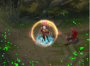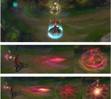 为什么说这一款皮肤是很不错的实战型皮肤呢?因为这一款皮肤的卡尔玛Q以及RQ技能都极其的不明显,这能够去混淆敌人对于你技能的判断,主色调为红色,大家可以通过动图看出Q以及RQ的区别并不明显,而Q技能本身的弹道也比原始皮肤的蓝色更加难以看清。